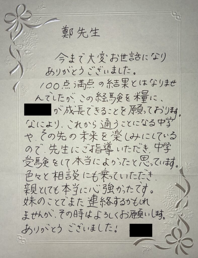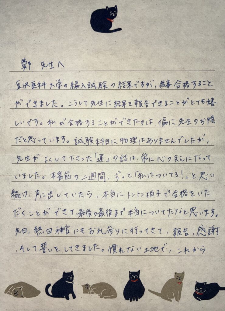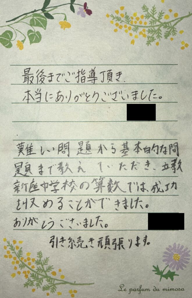 実際に指導を受けた生徒・保護者の方からいただいたお手紙をご紹介しています。