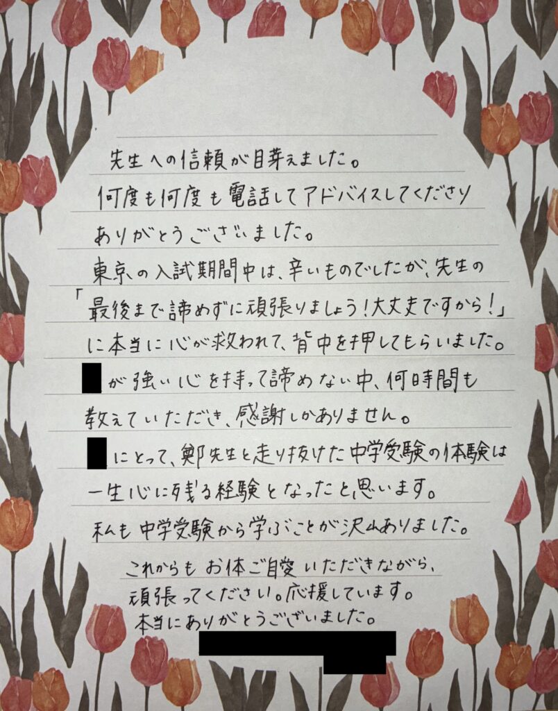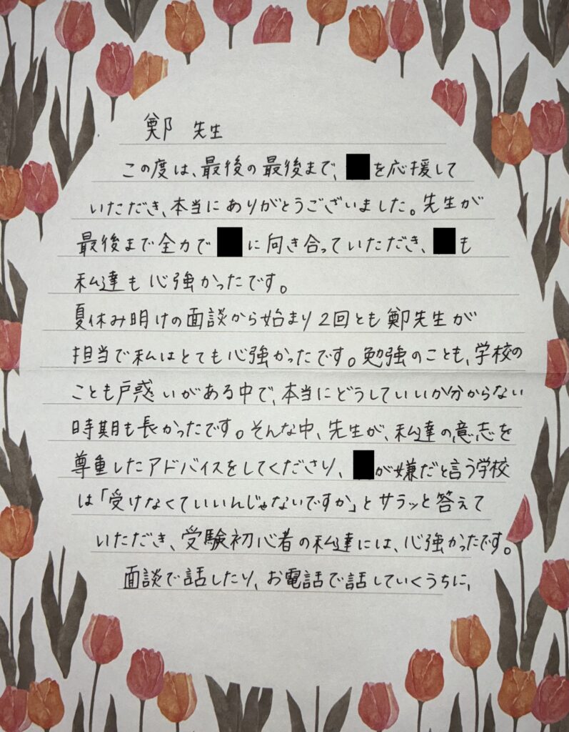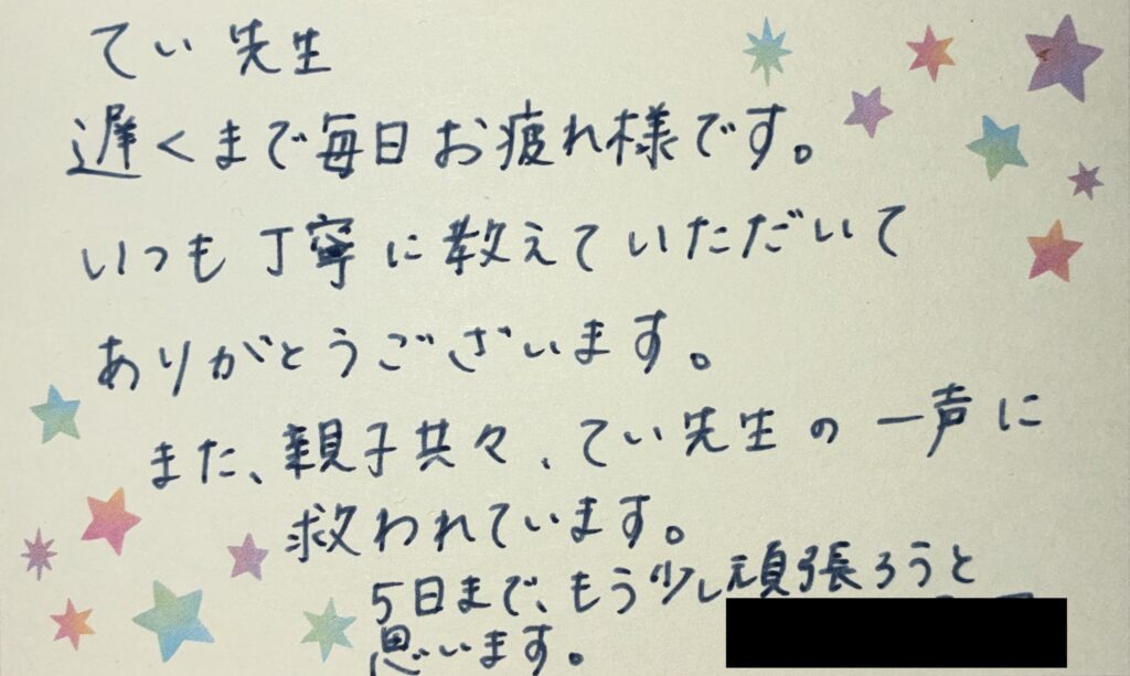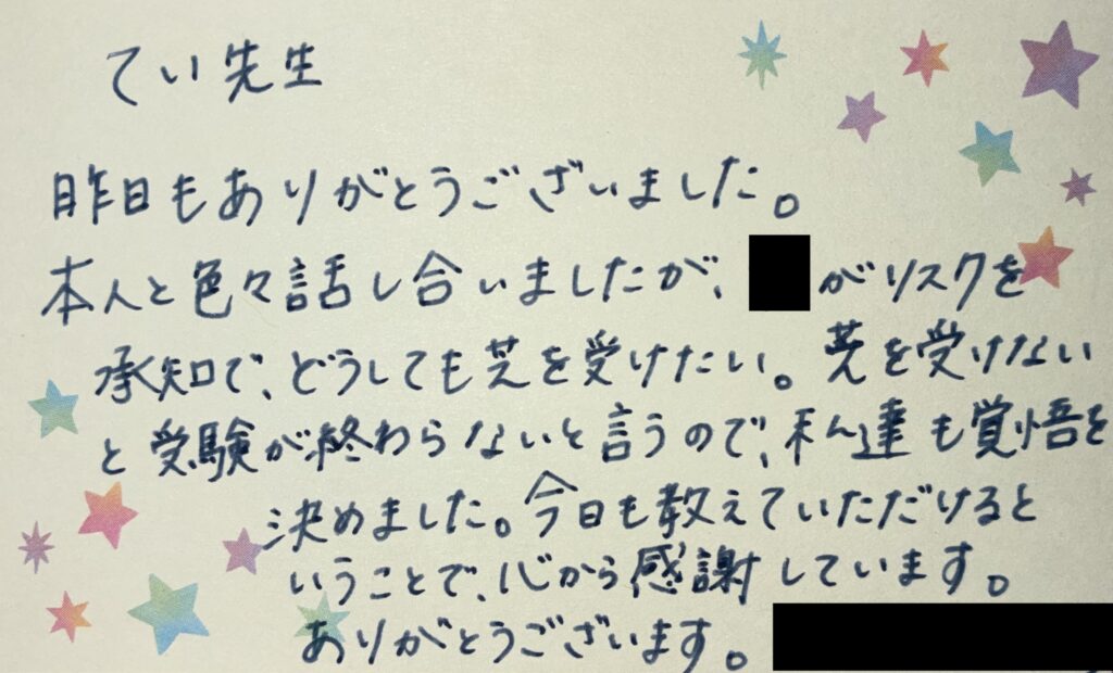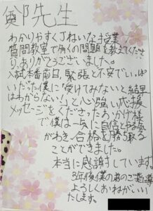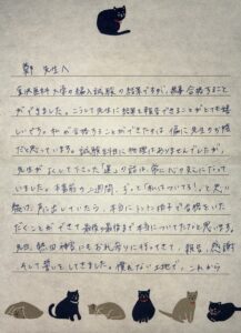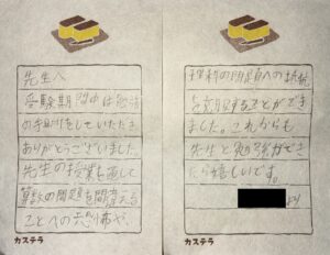 受験直前には、率直な不安や決意が綴られたお手紙をいただきました。