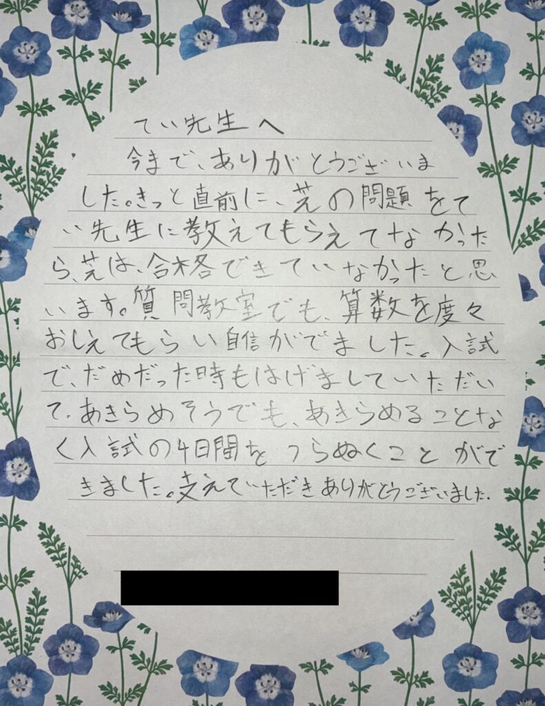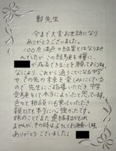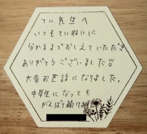 当教室ではこれまで多くの生徒・保護者の方から温かいお手紙やメッセージをいただいています。