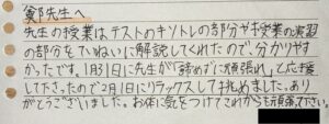 最後まで諦めなかった結果、見事志望校合格を達成しました。